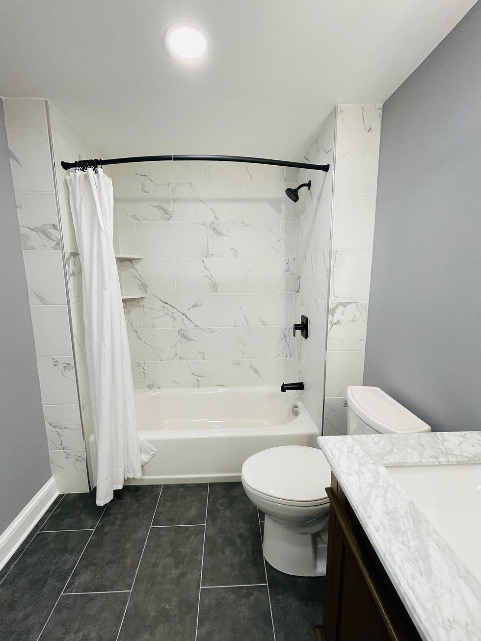 Frame-Up Contracting LLC is an experienced home remodeling company specializing in custom bathroom renovations. We recently completed a stunning bathroom remodel in East Brunswick, NJ, featuring modern tilework, a bold black toilet, and sleek contemporary fixtures. Come see the craftsmanship for yourself and explore more of our recent projects!